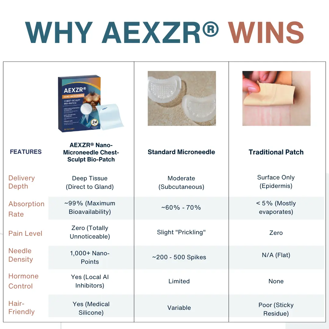 Deep-Tissue “Bio-Infiltration“: Unlike flat patches that sit on top of the skin, our Dissolvable Nano-Microneedles create microscopic channels to deliver active ingredients 3mm deepโstraight into the subcutaneous fat and mammary glands.