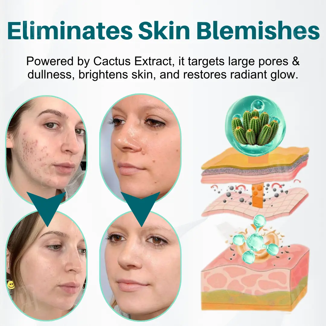 🌵 Cactus Extract: Delivers a natural cooling effect to soothe skin, while stimulating collagen and elastin production to improve the elasticity of pores.